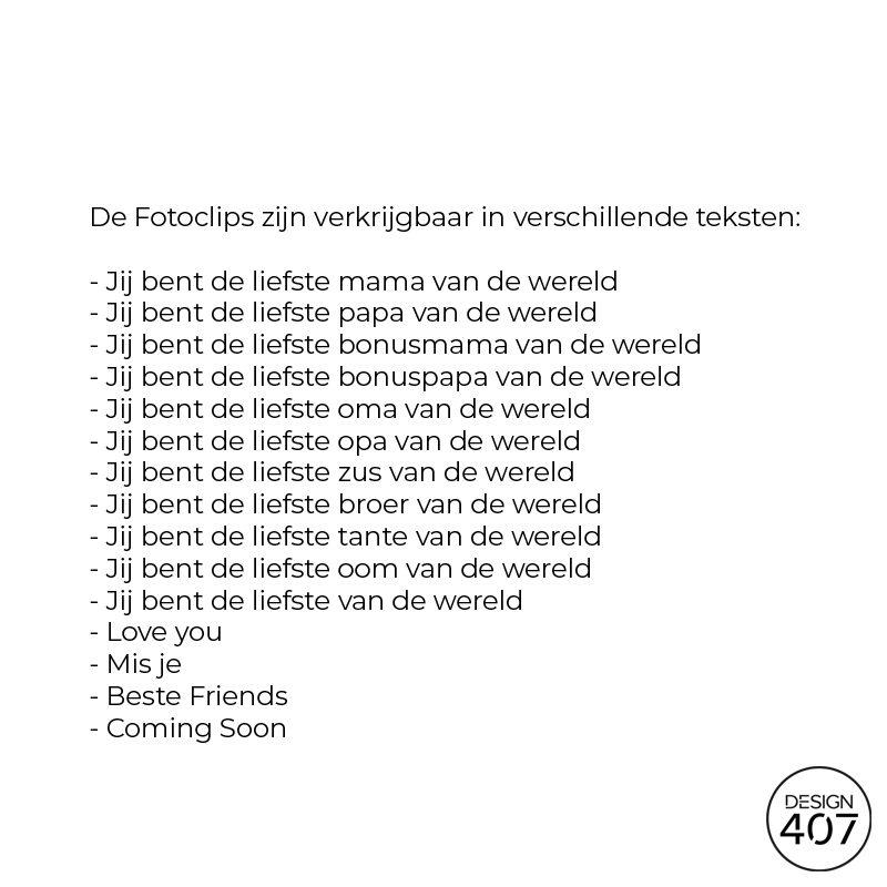 Ook leuk! Deze Foto clip is ook beschikbaar voor de liefste mama, papa, oma, opa, bonusmama, bonuspapa en nog véél meer!