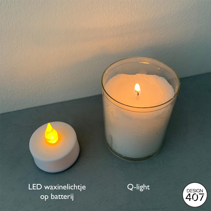 Wij bieden als extra optie een LED-waxinelichtje op batterijen aan, en een Q-light.