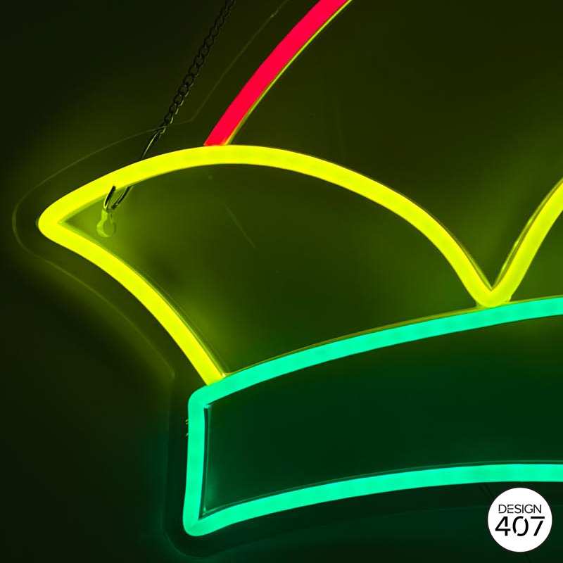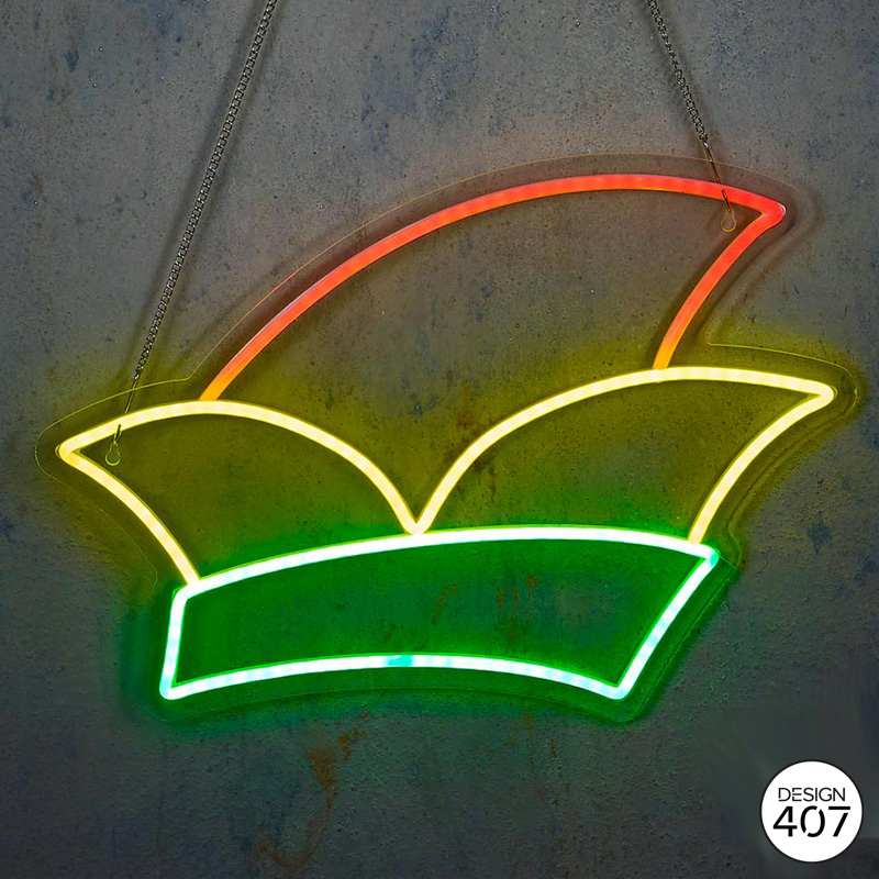 Breng kleur en sfeer in elke ruimte met deze unieke Neon Led verlichting op plexiglas, compleet met ophangketting. De Prinsensteek komt volledig tot leven in de drie klassieke carnavalskleuren: rood, geel en groen. Het Neon sign is 45 x 30 cm en heeft een kabel van 5 meter tot aan de transformator. De verlichting werkt op stroom en kan ook met een timer worden ingesteld. Zelfs als de verlichting niet aan is, zijn de carnavalskleuren nog goed zichtbaar.