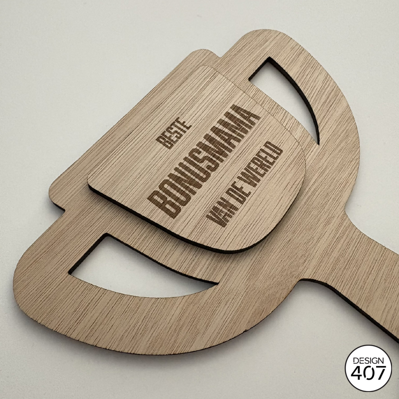 Ook leuk, de trofee is verkrijgbaar in verschillende varianten, zoals beste papa, beste mama, beste juf, hoera geslaagd en nog véél meer!