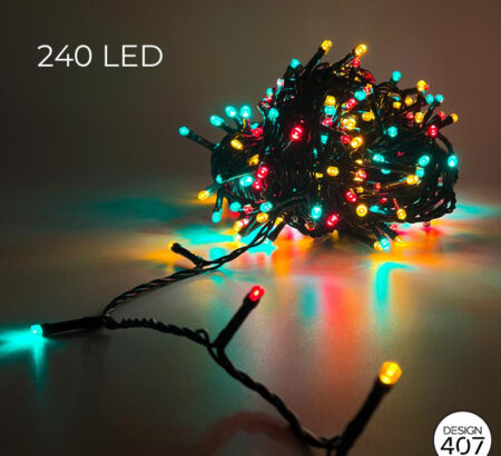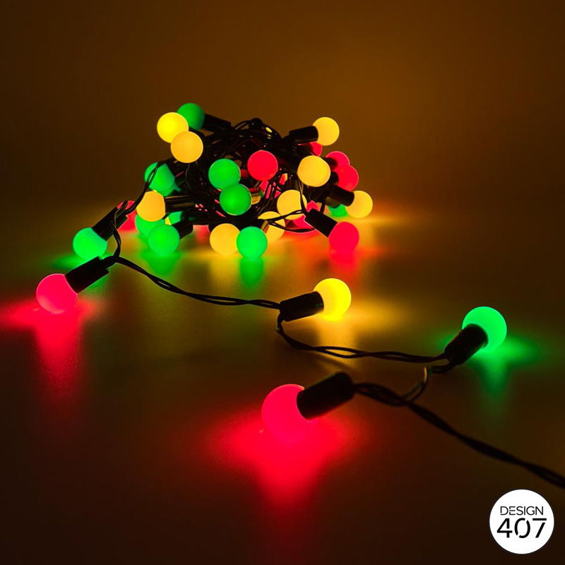 Prachtige verlichting in de kleuren rood, geel groen. De verlichting bestaat uit 50 bollen en is 6 meter lang. De verlichting werkt op stroom. Let op! Deze bollen zijn alleen voor binnen!